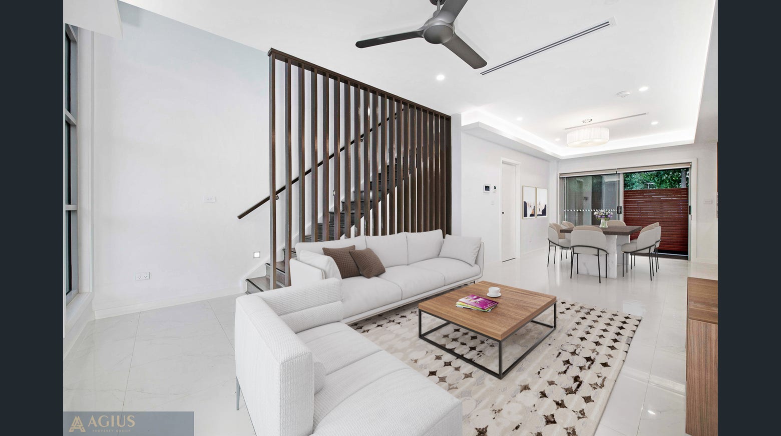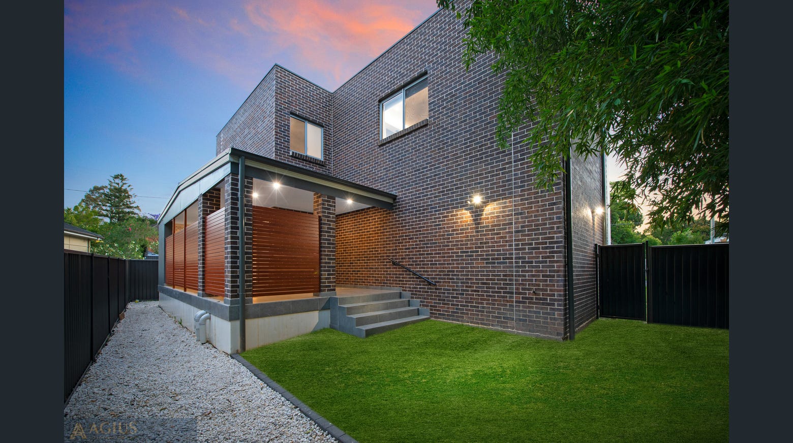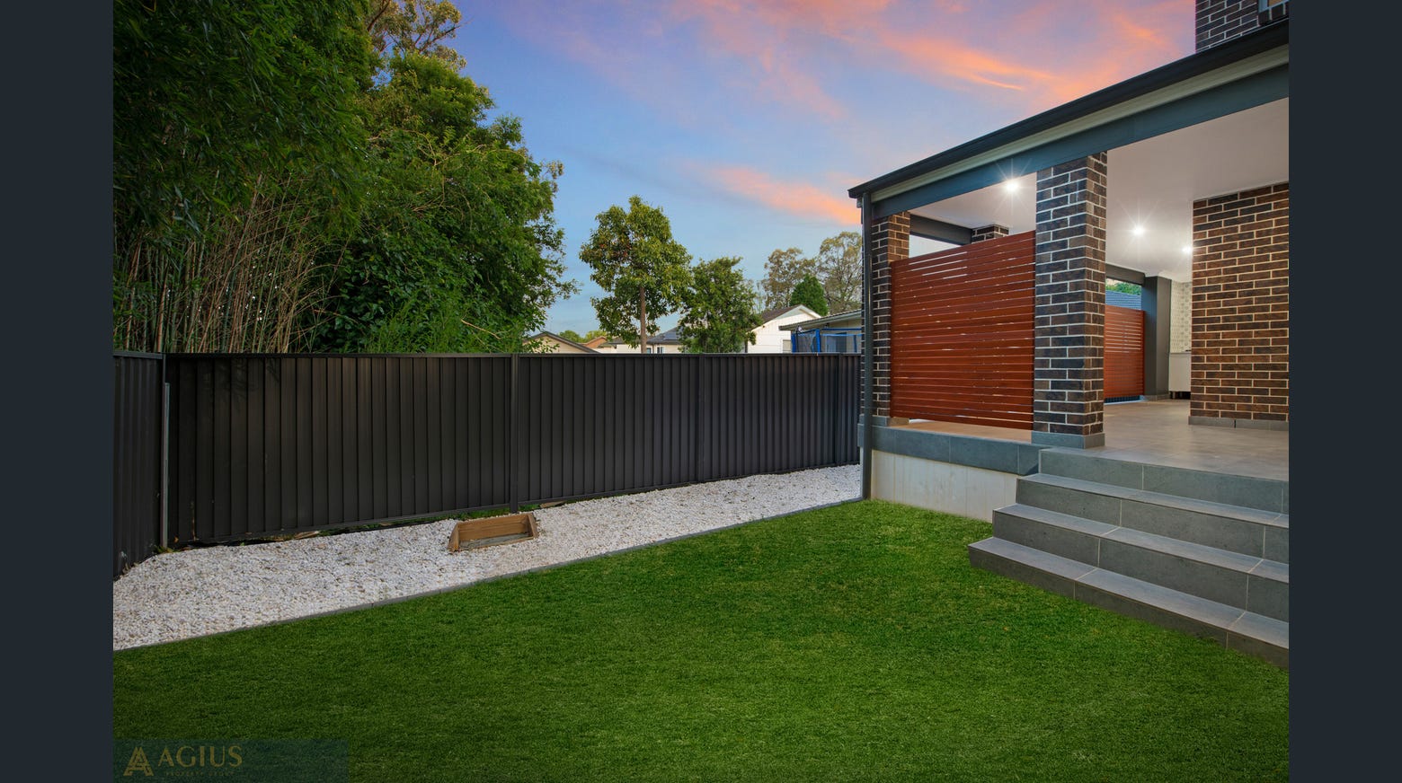 • Key Features: Open-plan living, high ceilings, stone benchtop kitchen, energy-efficient design, landscaped gardens